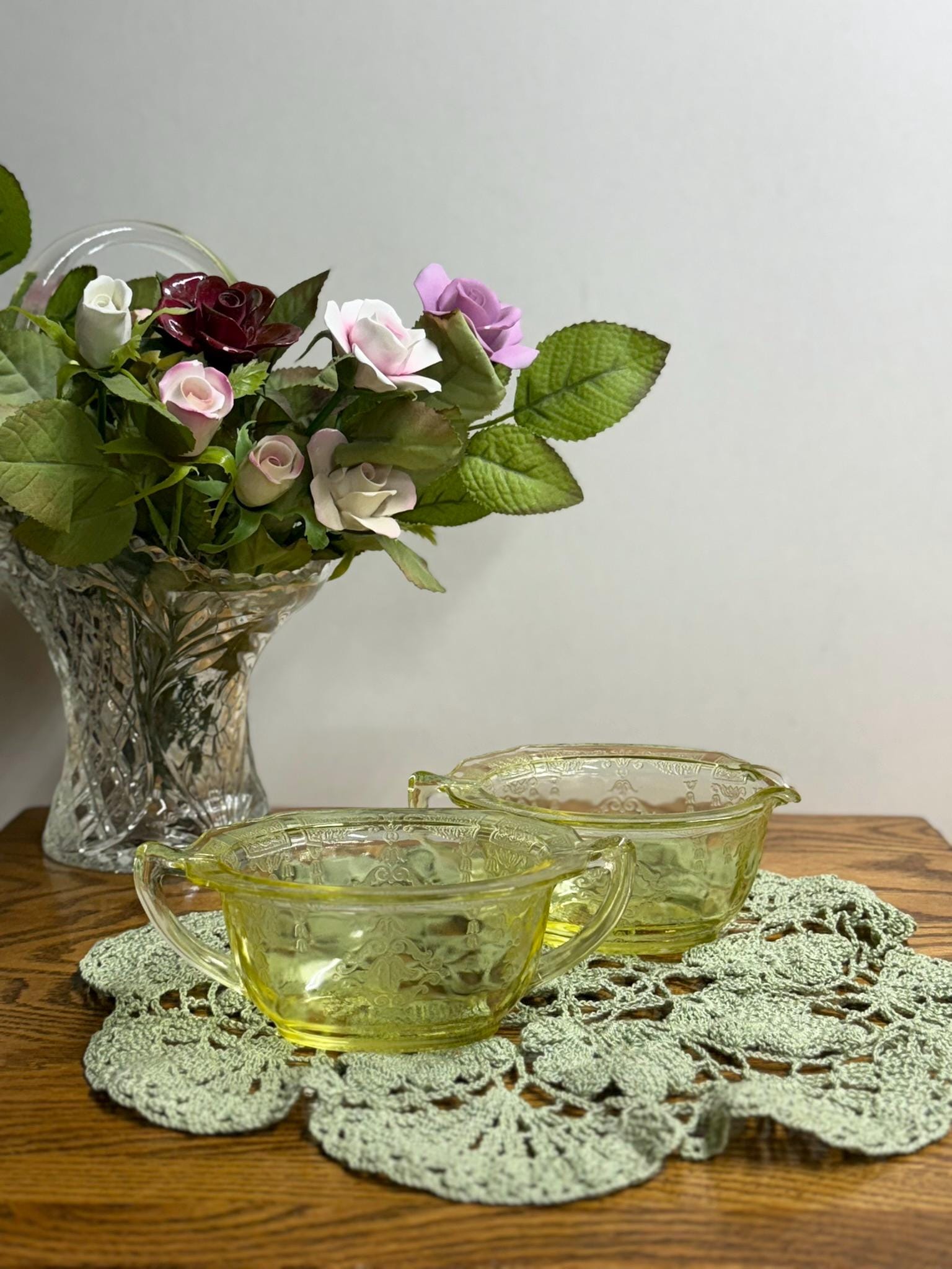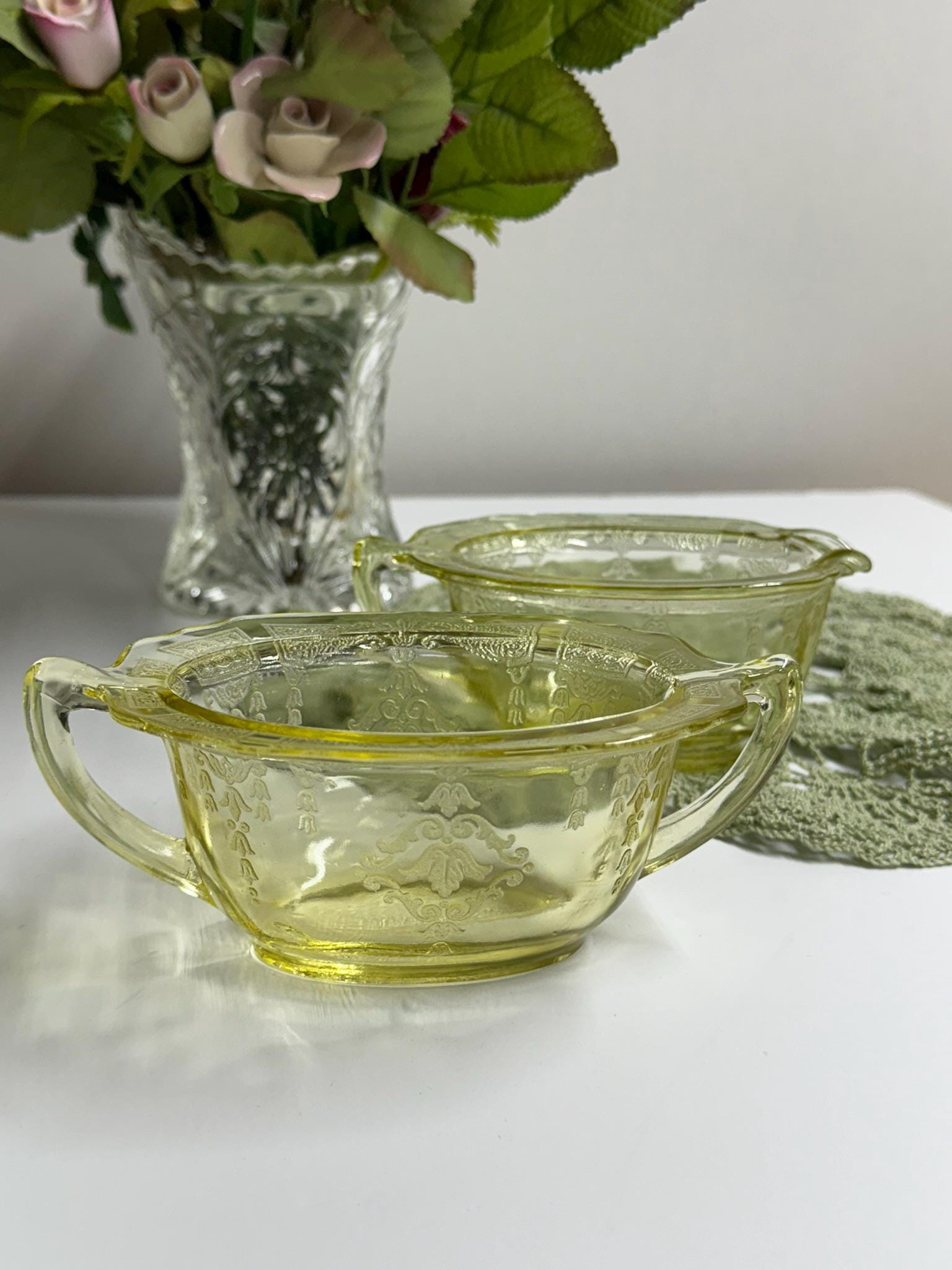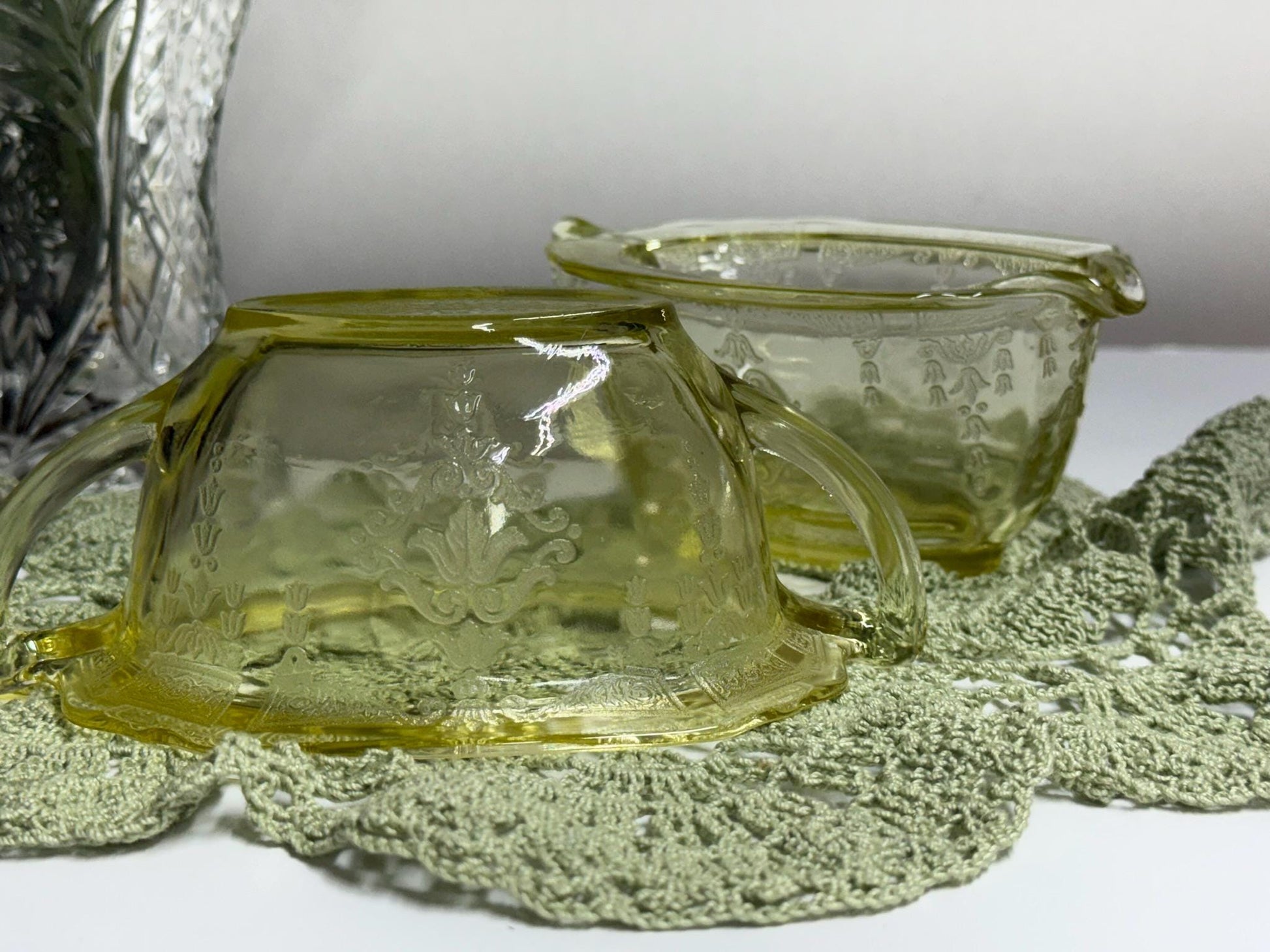 Anchor Hocking 1930s Princess Pattern Topaz Yellow Cream and Sugar Set