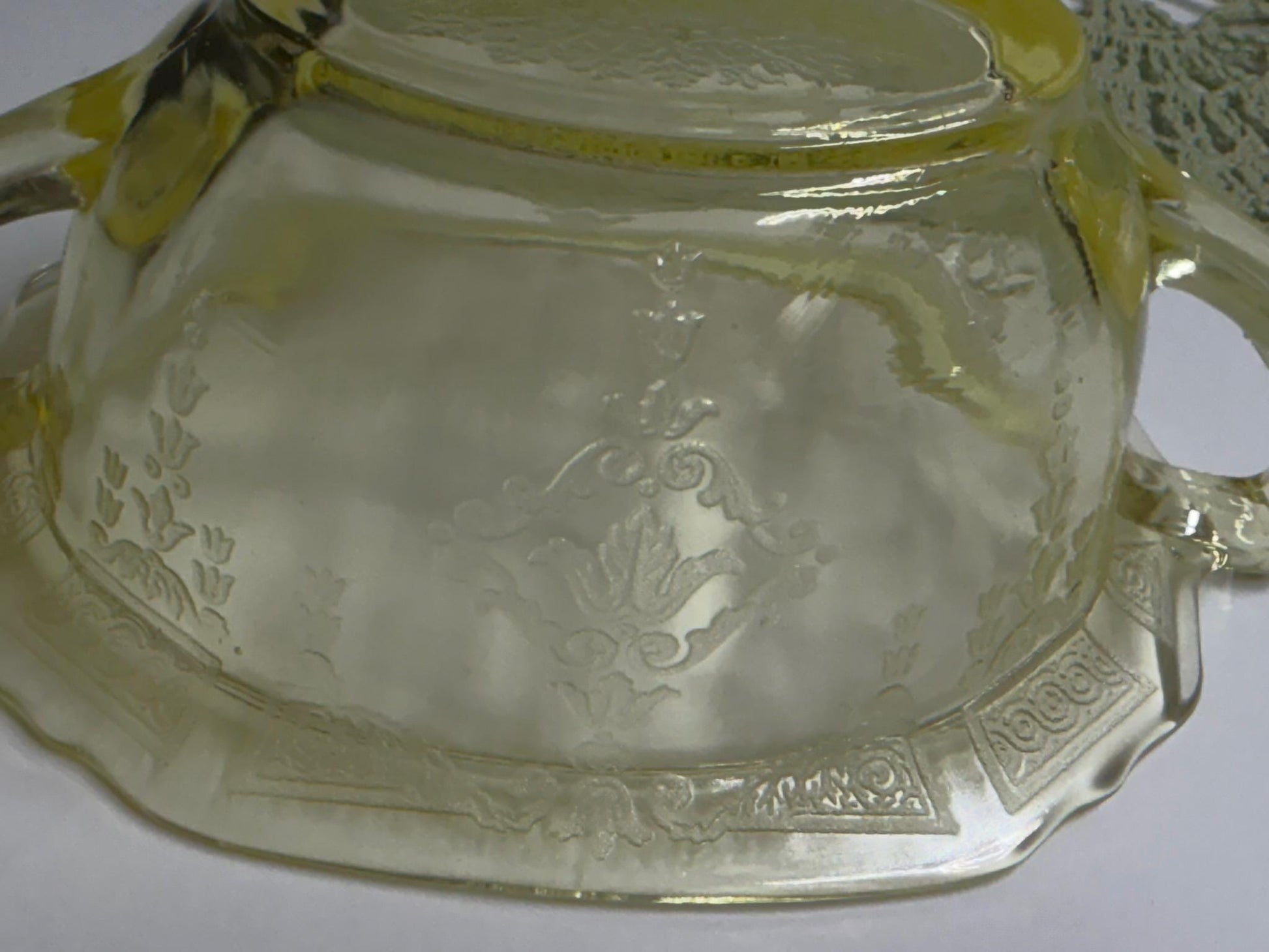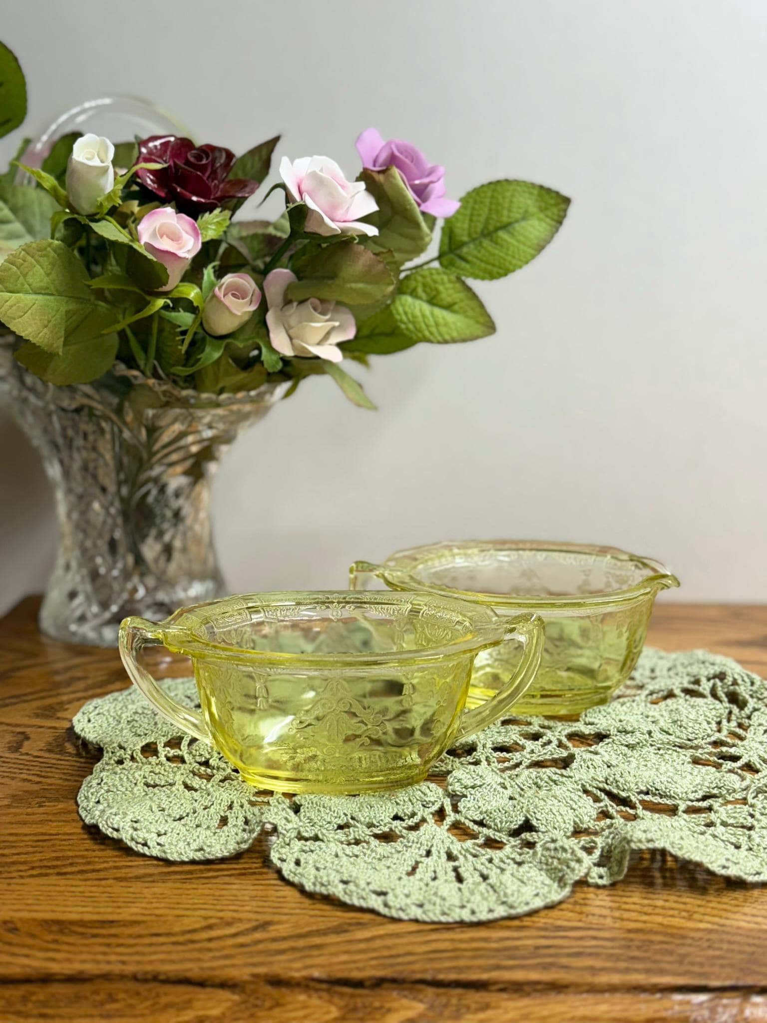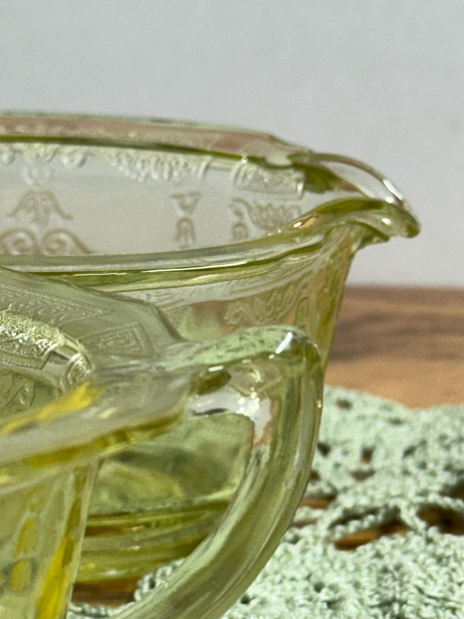 Anchor Hocking 1930s Princess Pattern Topaz Yellow Cream and Sugar Set