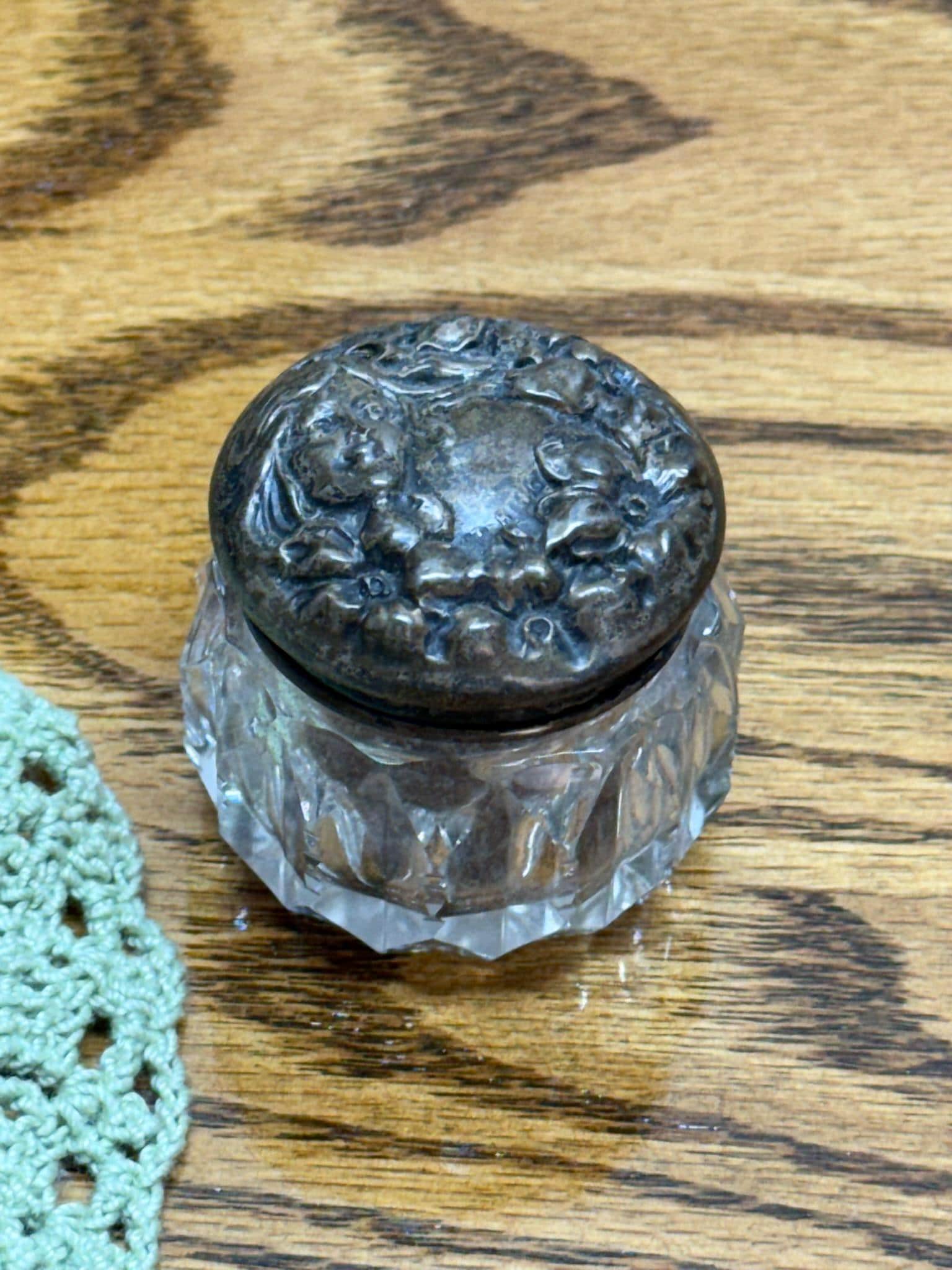 Art Nouveau Sterling Silver Repousse Vanity Jar
