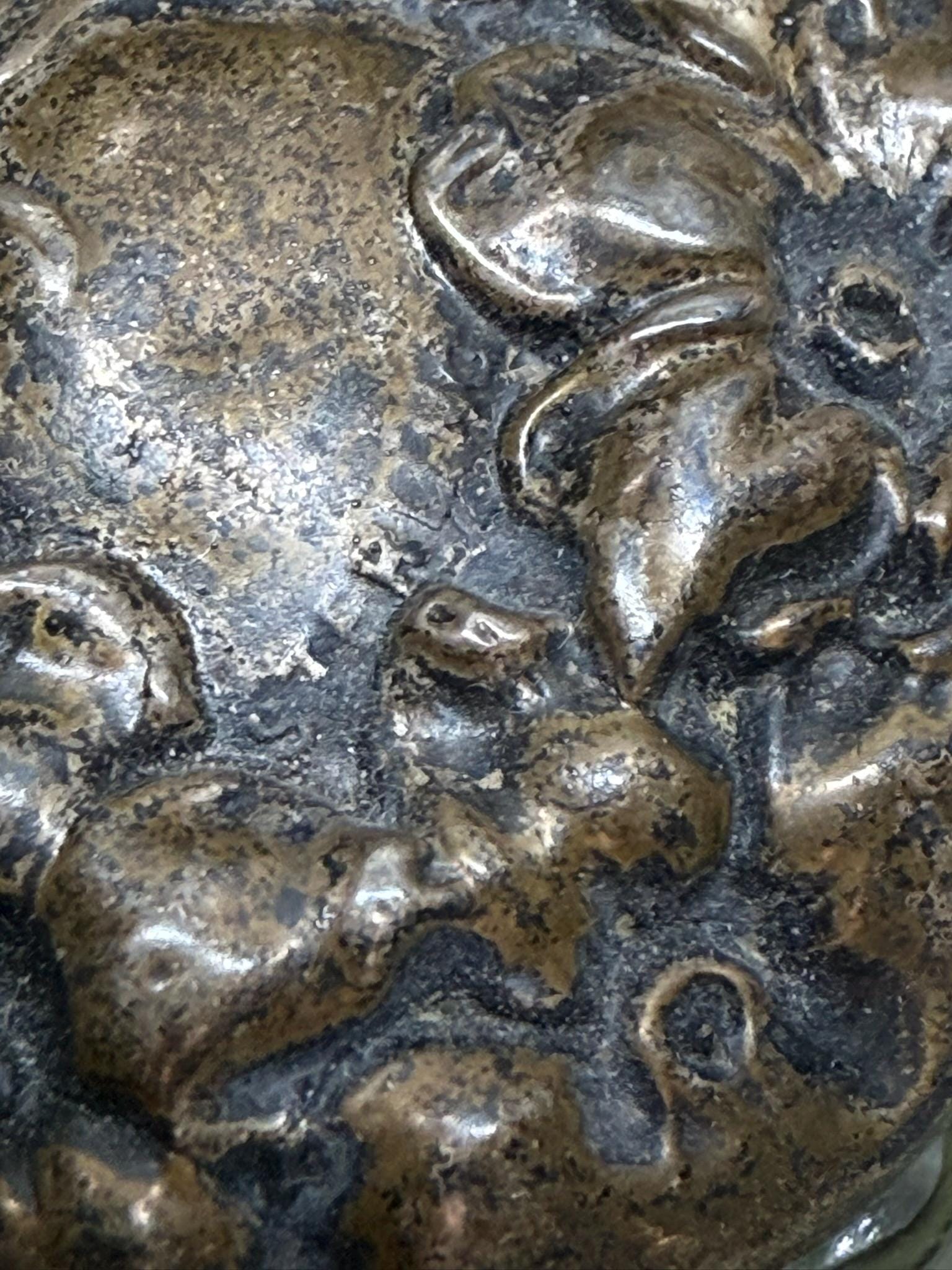 Measuring 2 inches by 2 inches, aside from a tiny hole noted in several images that is hardly noticeable on the woman's nose, it remains in truly excellent antique condition. This distinctive piece would make a wonderful gift for someone special or a remarkable addition to your own collection.