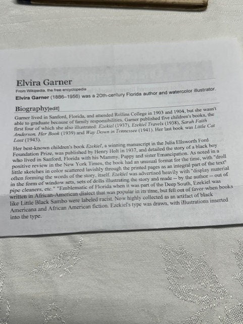 Introducing a rare and collectible find for book lovers and collectors alike - the Antique Hardback Book, 1937 “Ezekiel” by Elivira Garner. This beautifully illustrated children's book is a second edition, making it even more special and unique. This is a hardcover book, with no jacket present. While it may show signs of wear, the binding is intact and there is no splitting, ensuring the longevity of this treasured piece.